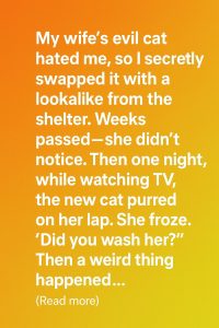 On impulse, I did something I now realize was more foolish than clever: I secretly swapped them.For weeks, life was peaceful. The new cat tolerated me, even sat near me while I worked. My wife didn’t notice at first. Then one evening, while we were watching TV, the new cat curled up on her lap and purred. My wife froze.She whispered, almost in disbelief, “Did you wash her? She feels… different.”